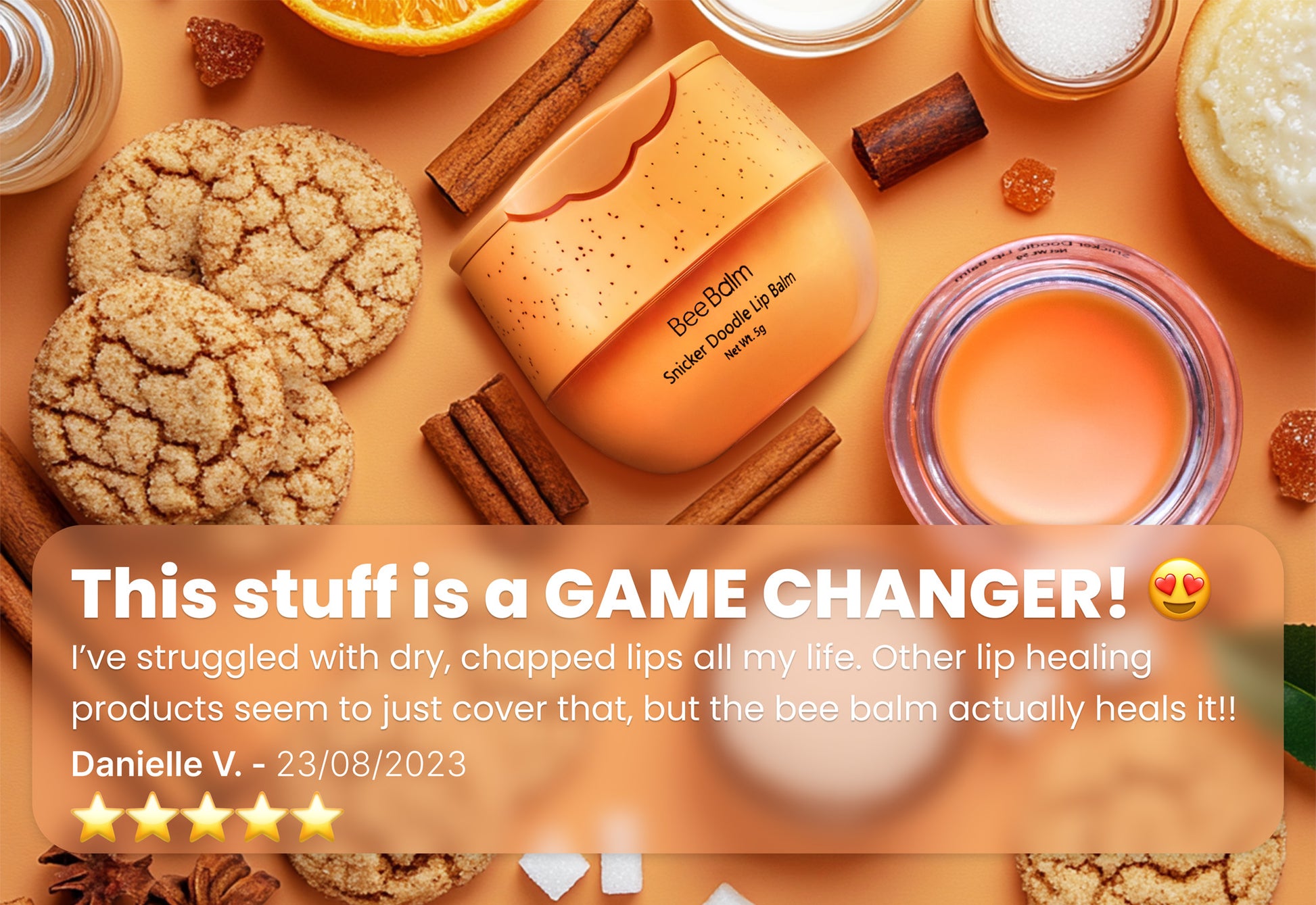 Snickerdoodle Bee Balm: limited edition warm, cozy cinnamon-vanilla scent. Only 1,000 available - grab one before they're gone! It's a warm hug for your lips!